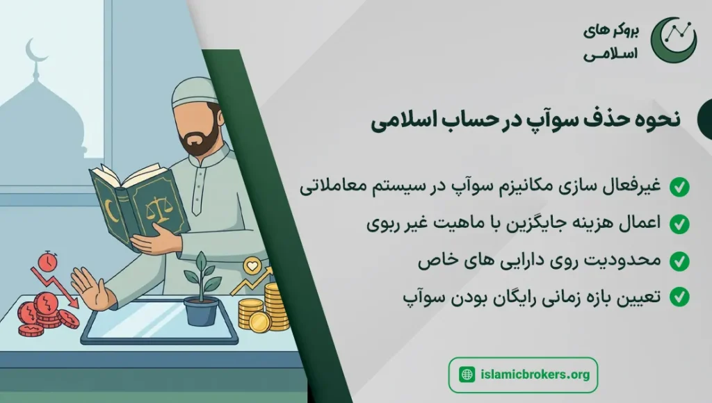 بروکرها برای حذف سوآپ در حساب اسلامی از شیوه های گوناگونی استفاده می کنند که مهم ترین آن ها به شرح زیر است: